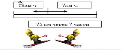 Из одного пункта в противоположных направлениях вышли два лыжника. Один идет со скоростью 18 км/ч, а другой со скоростью 7 км/ч. Через какое время расстояние между лыжниками будет равно 75 км?