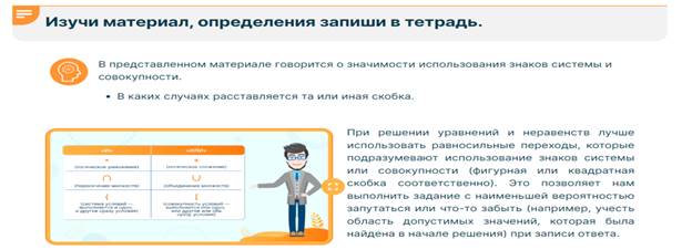 Краткое описание:Урок по предмету «Алгебра и начала математического анализа» для 11 класса по теме «Повторение, обобщение, систематизация знаний: неравенства». Урок систематизации знаний и умений. На уроке предусмотрено использование следующих типов электронных образовательных материалов: «Галерея изображений (группа изображений по одной тематике)», «Изображение или фото», «Кейсы по работе с информацией», «Чек-лист самоконтроля подготовки к ГИА».