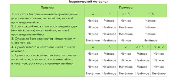 Обратить внимание обучающихся на частные случаи четности и нечетности суммы и произведения: