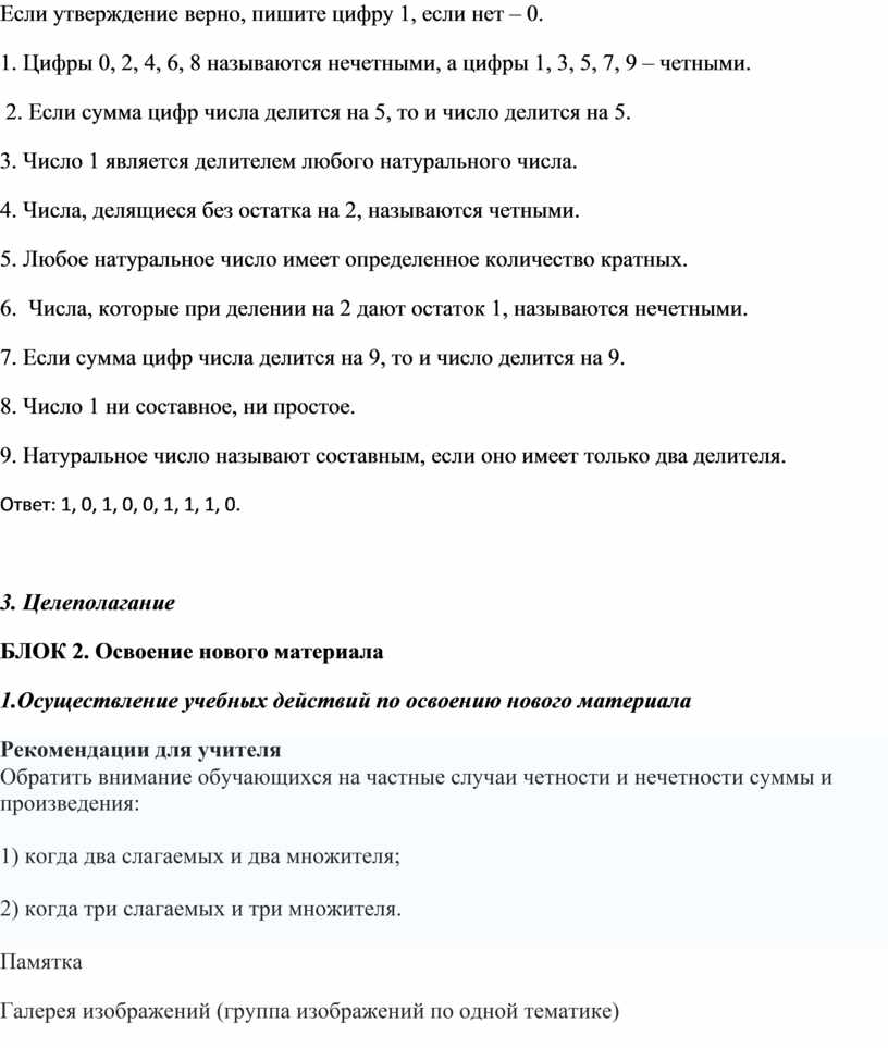 1. Цифры 0, 2, 4, 6, 8 называются нечетными, а цифры 1, 3, 5, 7, 9 – четными.