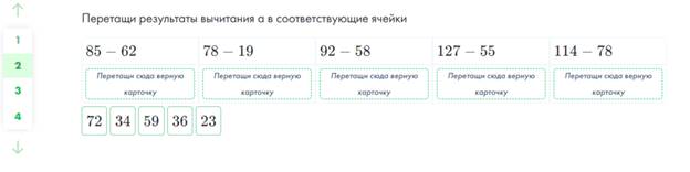 В третьей локации предлагается первичное закрепление. Выполнить вычитание многозначных чисел.