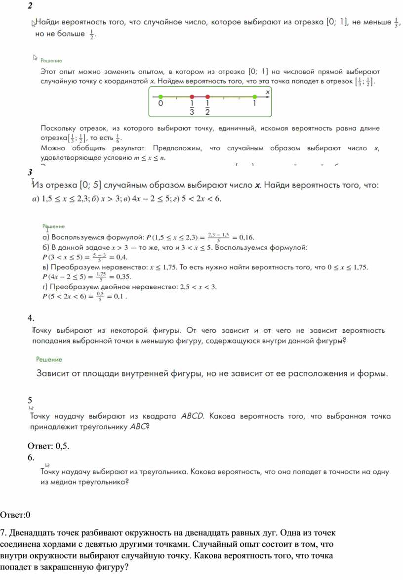 Тема: Геометрическая вероятность. Случайный выбор точки из фигуры на плоскости, из отрезка, из дуги окружности