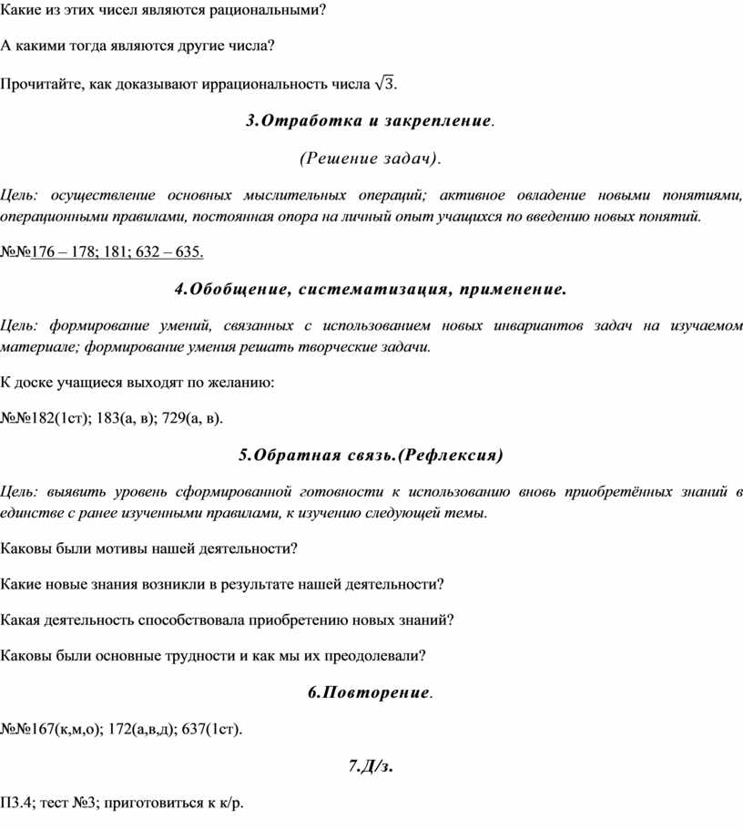 Обучающая: создать условия для формирования представлений об иррациональном числе;