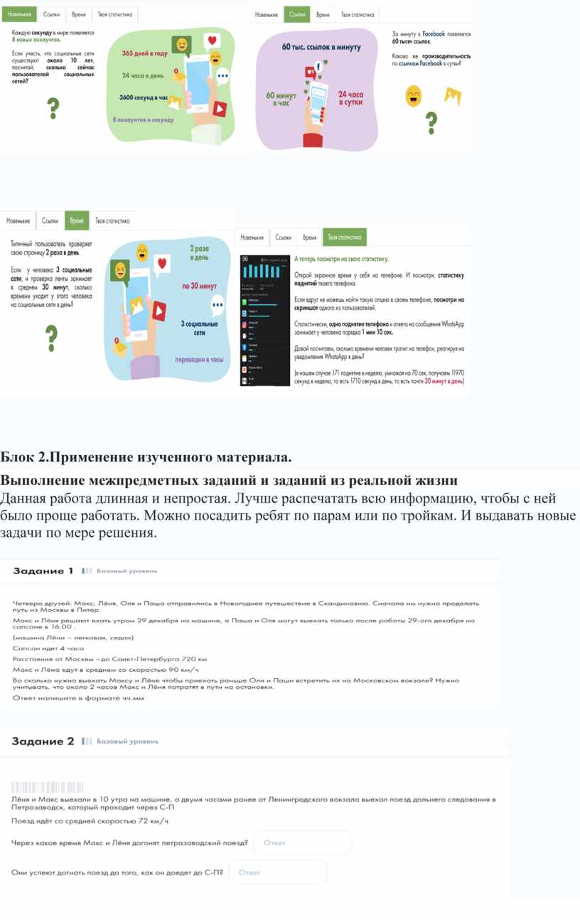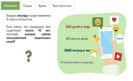 Эта работа рассчитана на небольшую разминку и повторение. Статистические данные о социальных сетях используются одновременно и в качестве мотивации к учебной деятельности, и в качестве визуализации масштабов происходящего, о которых дети могут и не задумываться. В качестве повторения здесь используются перевод одних единиц измерения времени в другие, умножение многозначных чисел, как считать производительность.