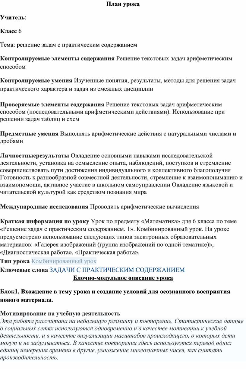 Контролируемые элементы содержания Решение текстовых задач арифметическим способом