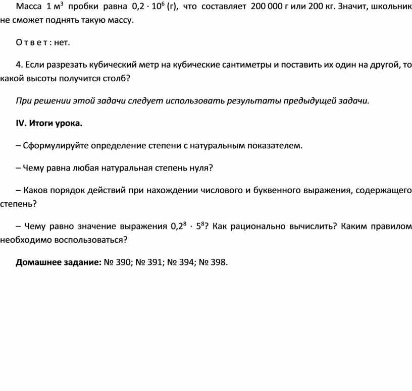 3. Может ли школьник поднять 1 м3 пробки? (Масса 1 см3 пробки 0,2 г.)