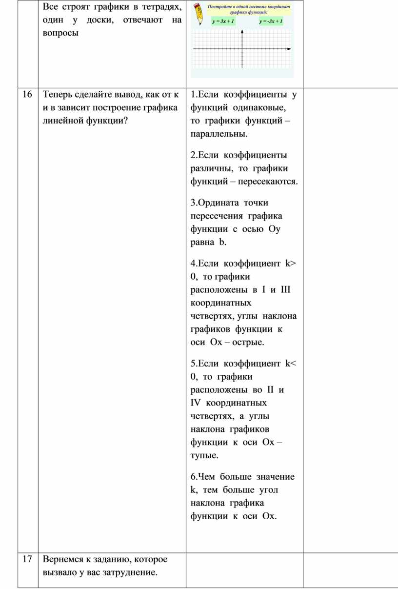 6. по формуле линейной функции научить определять соответствующий ей график.