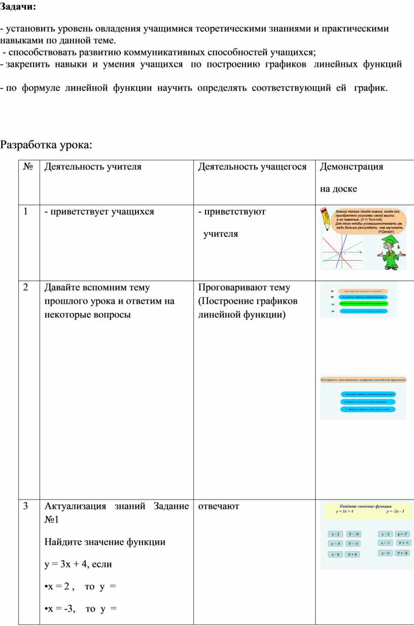 - закрепить навыки и умения учащихся по построению графиков линейных функций