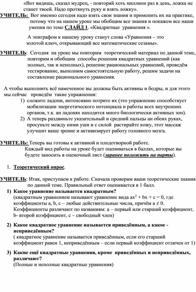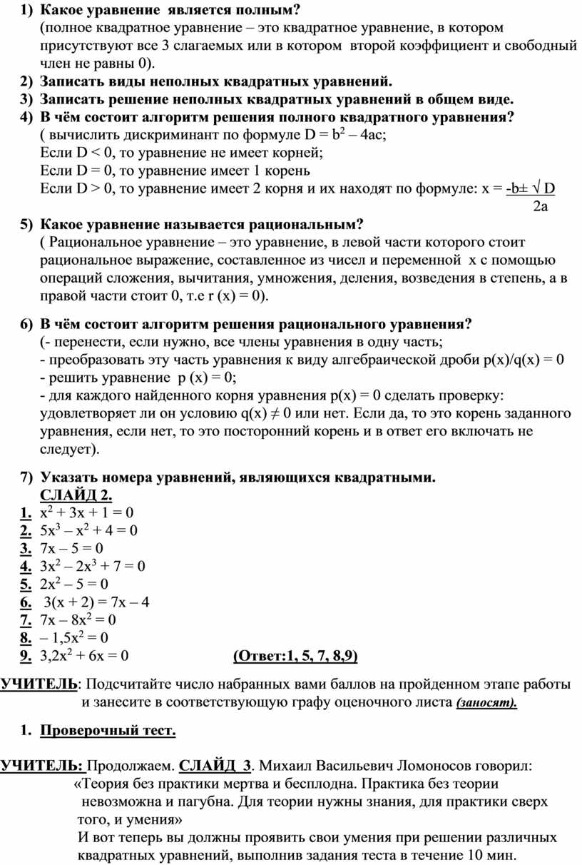 Я предлагаю вам решенное уравнение (СЛАЙД 6)