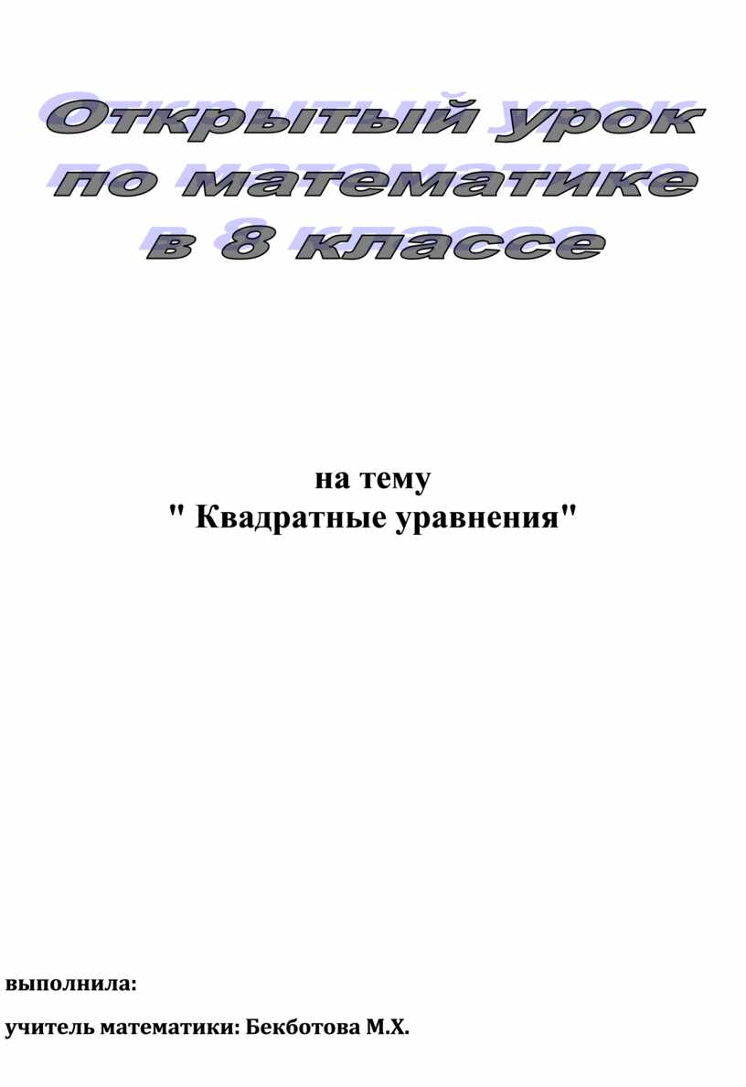 умения по теме СЛАЙД 1. «Квадратные уравнения ».