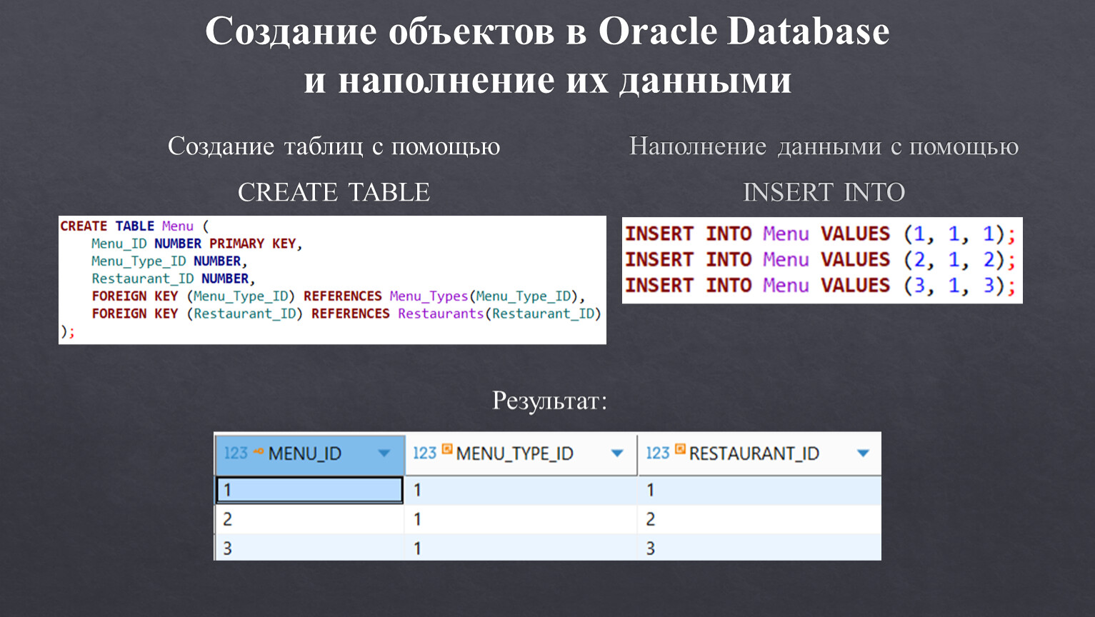 Использование Oracle Database гарантирует высокую производительность, безопасность и возможность дальнейшего расширения функциональности системы.