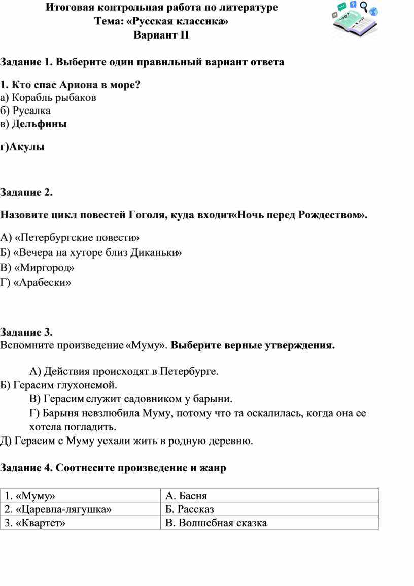 Задание 4. Соотнесите произведение и жанр