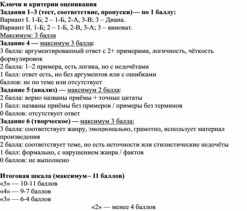 Ключи и критерии оценивания