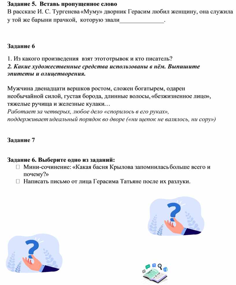 Ø Написать письмо от лица Герасима Татьяне после их разлуки.