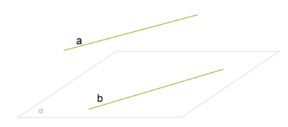 Так как прямые a и b находятся в одной плоскости α и у них нет общих точек, то они параллельны.