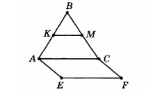 Решение: Т.к. КМ − средняя линия, то АС= 2·КМ, то АС=2·7=10