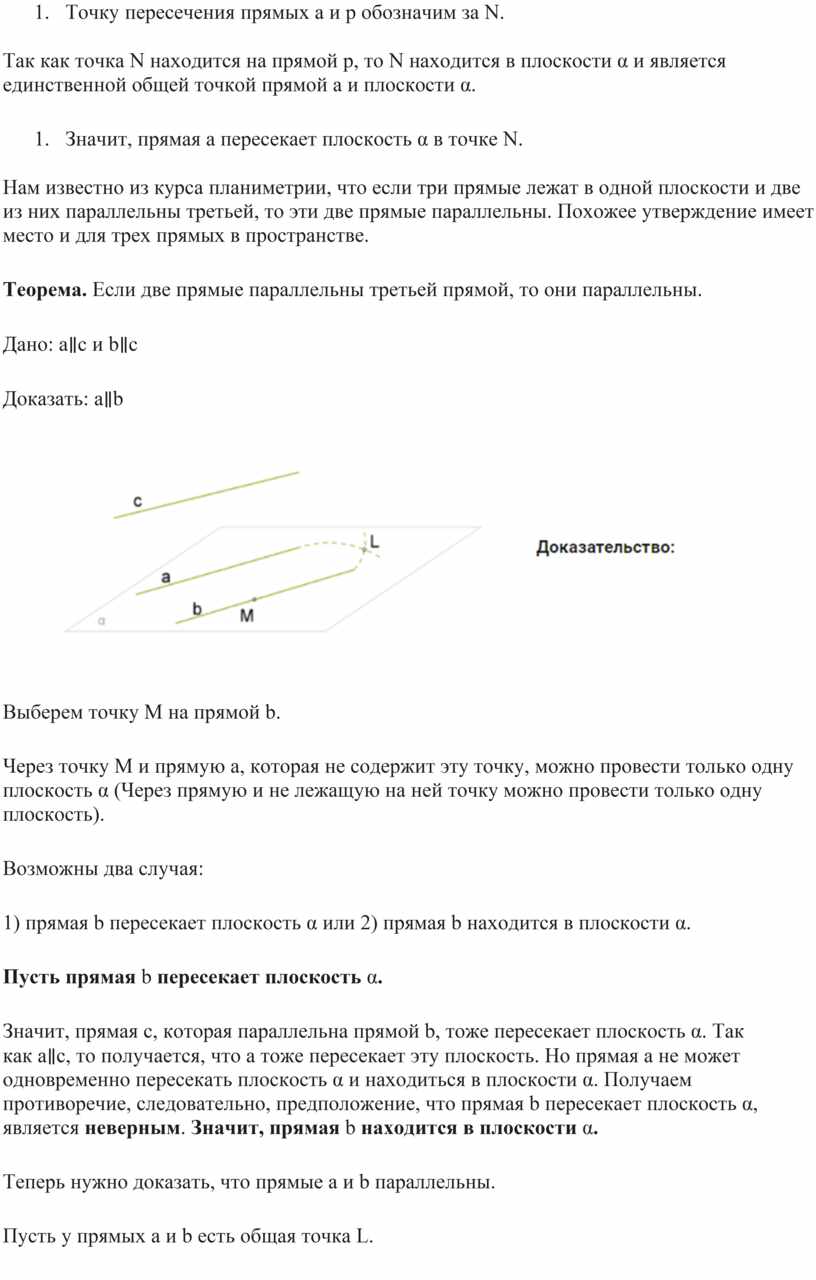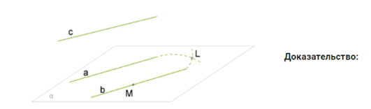 Это означает, что через точку L проведены две прямые a и b, которые параллельны прямой c. Но по второй теореме это невозможно. Поэтому предположение неверное, и прямые a и b не имеют общих точек.