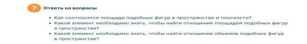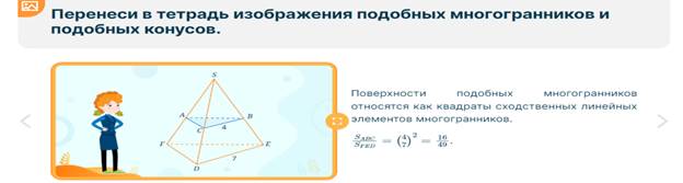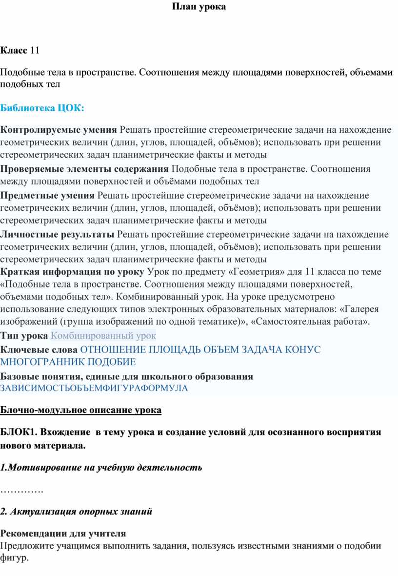 площадями поверхностей, объемами подобных тел». Комбинированный урок. На уроке