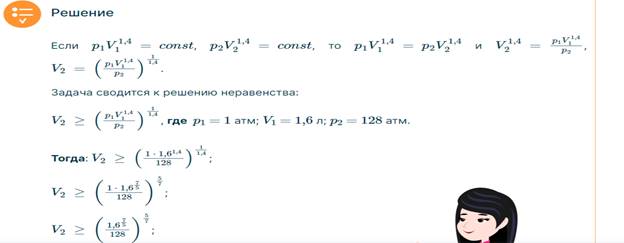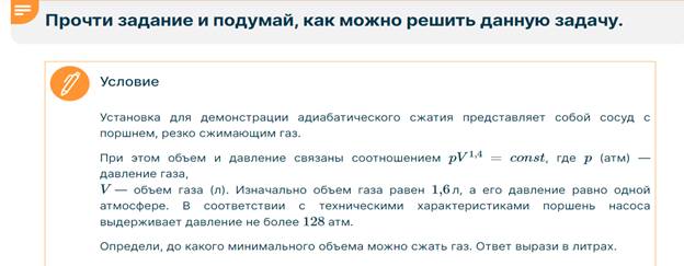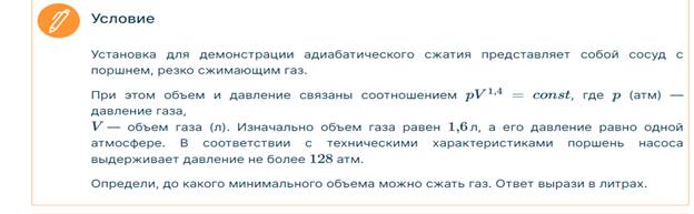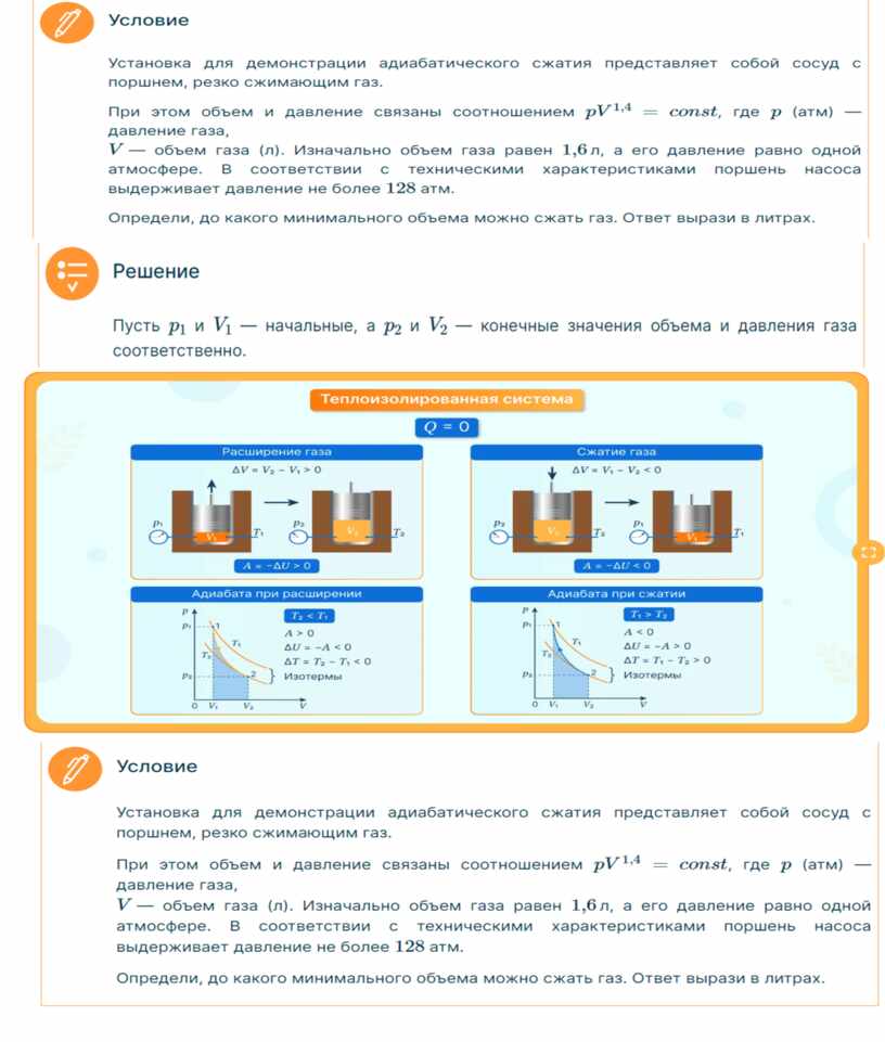 Перед решением задачи с физическим содержанием предложите учащимся посмотреть видеоролик, в котором рассказывается о применении адиабатного процесса сжатия газа в жизни.