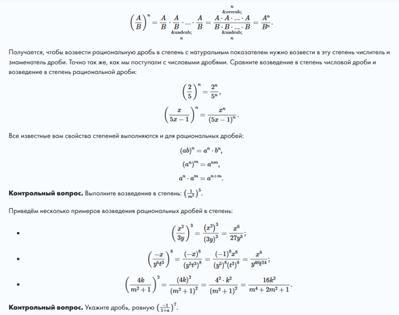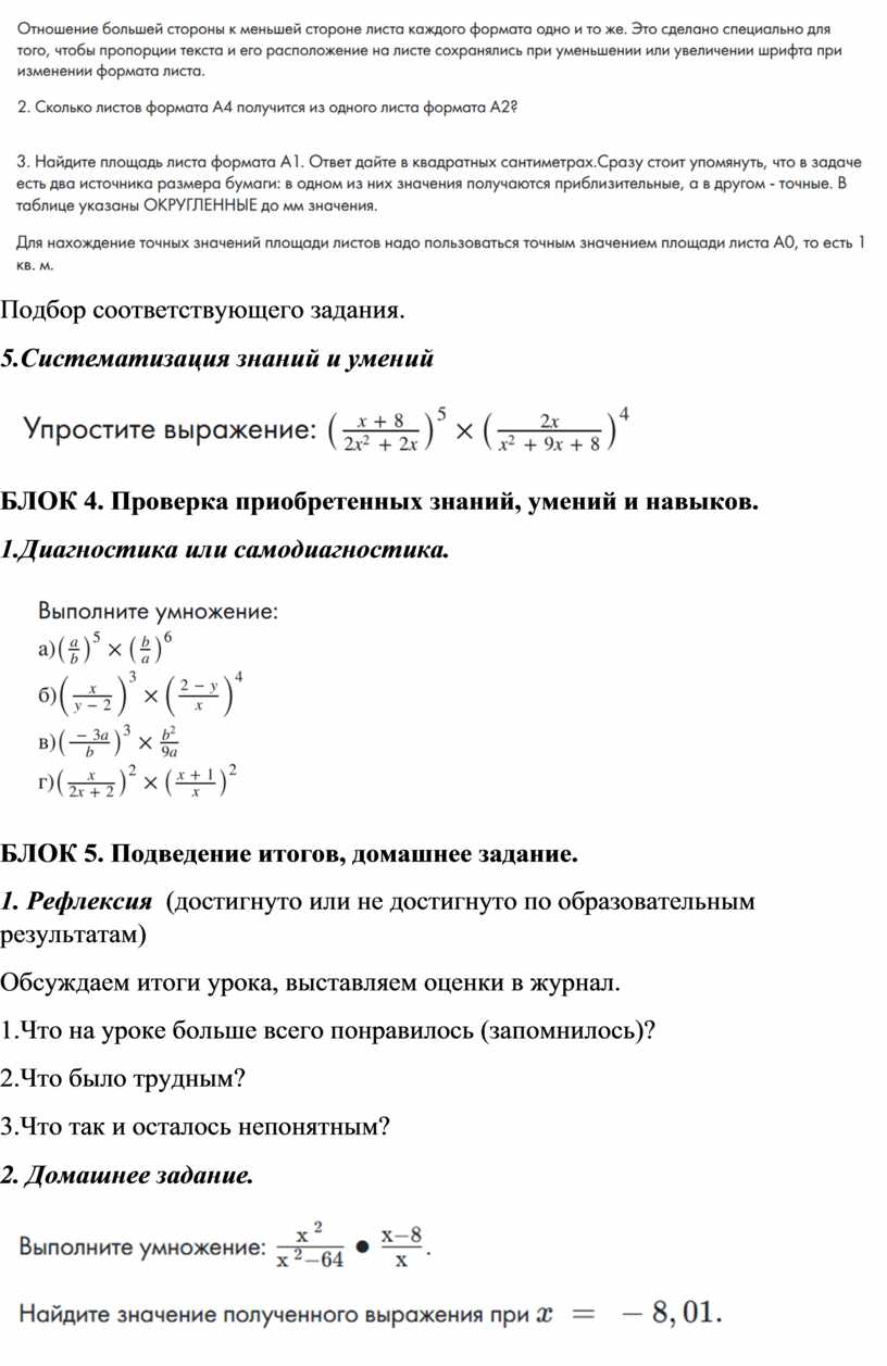 Предметные: научатся применять теоретический материал при умножении и делении рациональных дробей и возведении в степень.