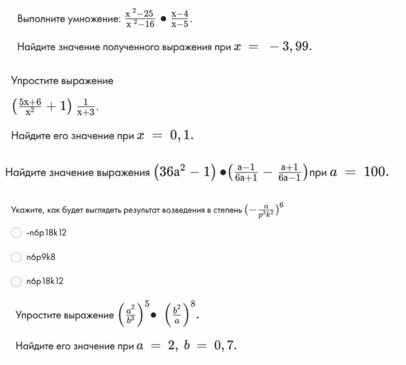 Тема: Сложение, вычитание, умножение и деление алгебраических дробей.