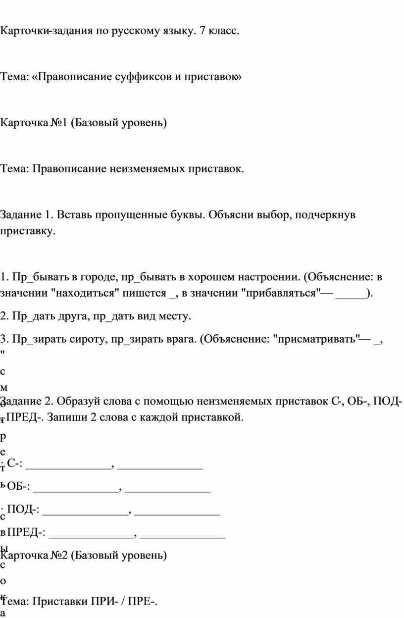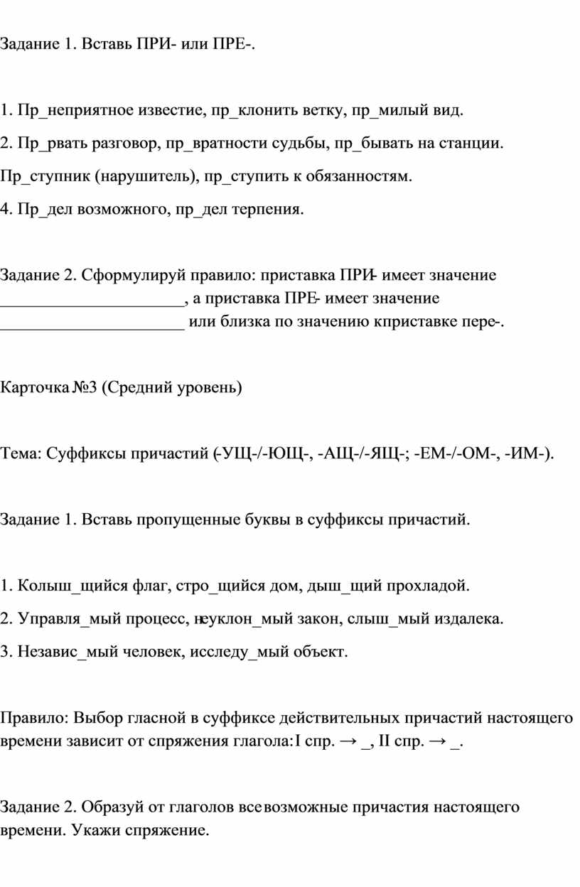 Карточка 2: 1. пре-, при-, пре-. 2. пре-, пре-, при-. 3. пре-, при-. 4. пре-, пре-.
