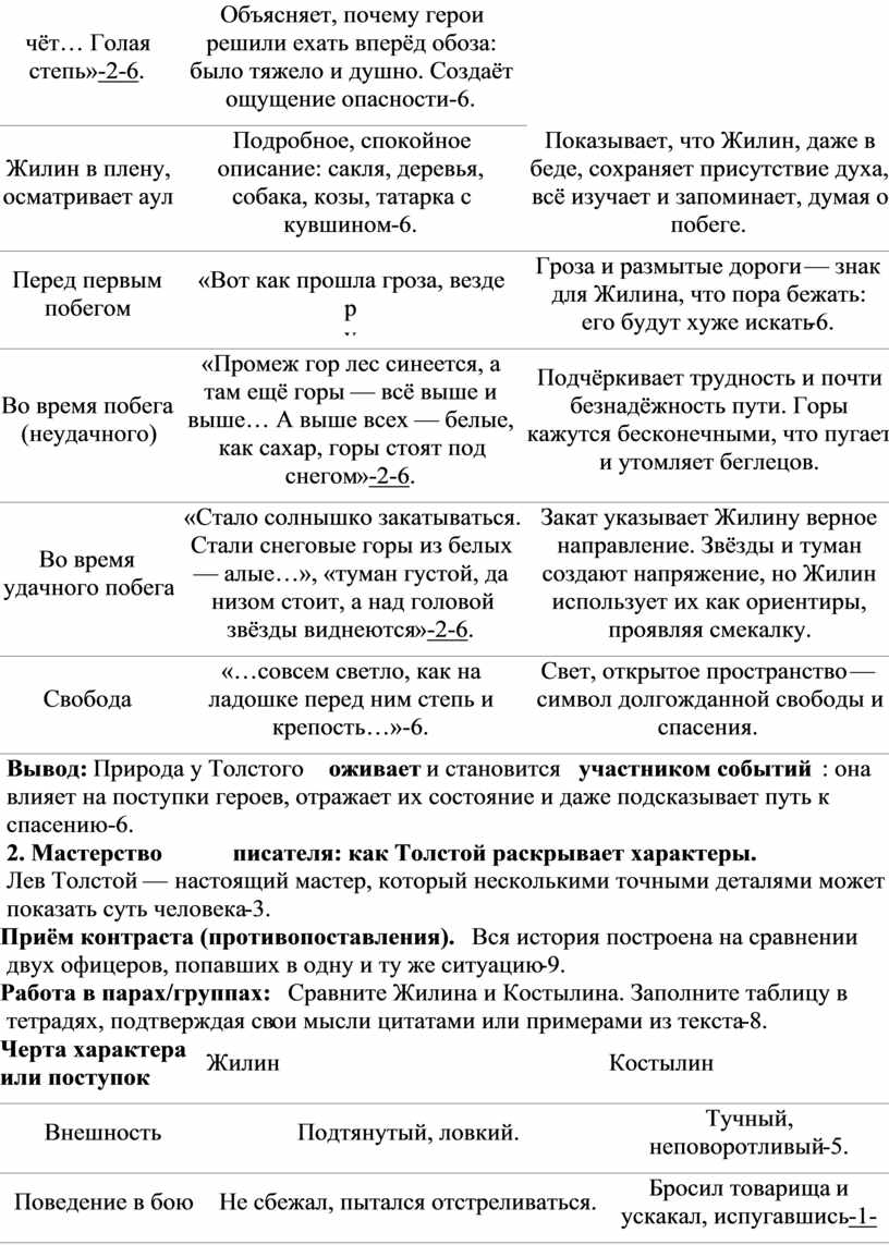 2. Аналитическое: Подготовьте рассказ об одном из героев (Жилине, Костылине или Дине), используя составленную на уроке таблицу.