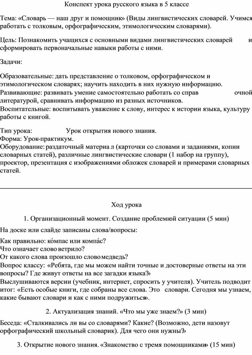 Тема: «Словарь — наш друг и помощник» (Виды лингвистических словарей. Учимся работать с толковым, орфографическим, этимологическим словарями).