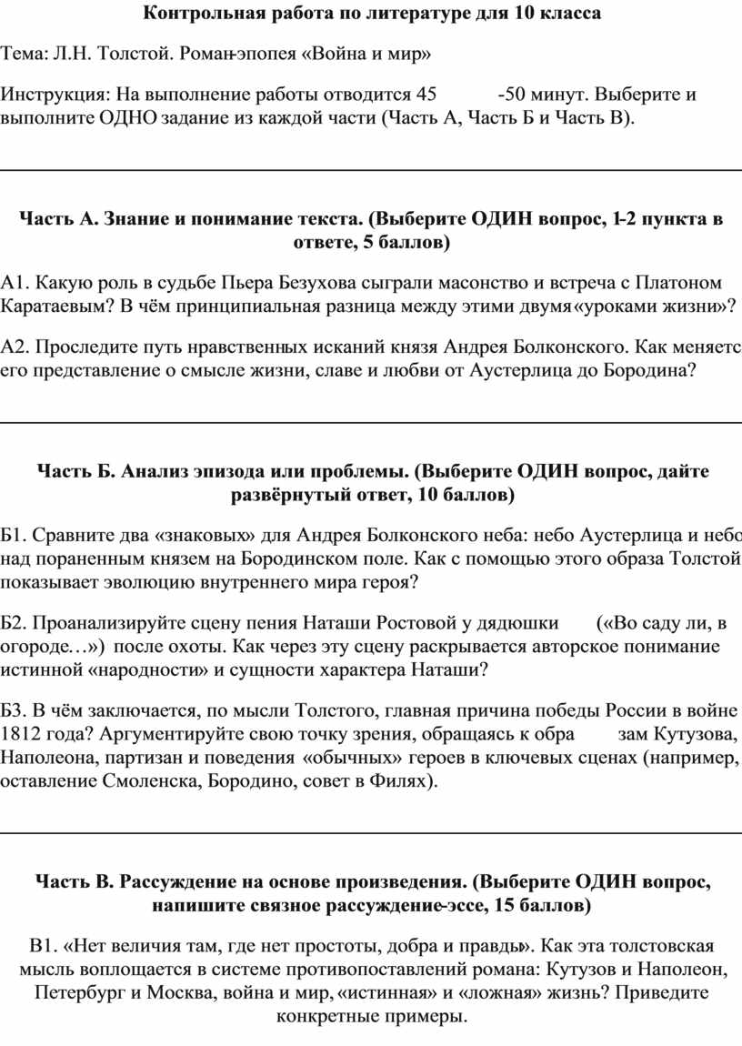 Эта работа позволяет проверить не только память, но и способность анализировать, сравнивать и формулировать собственные мысли на основе великого текста. Удачи в проведении!