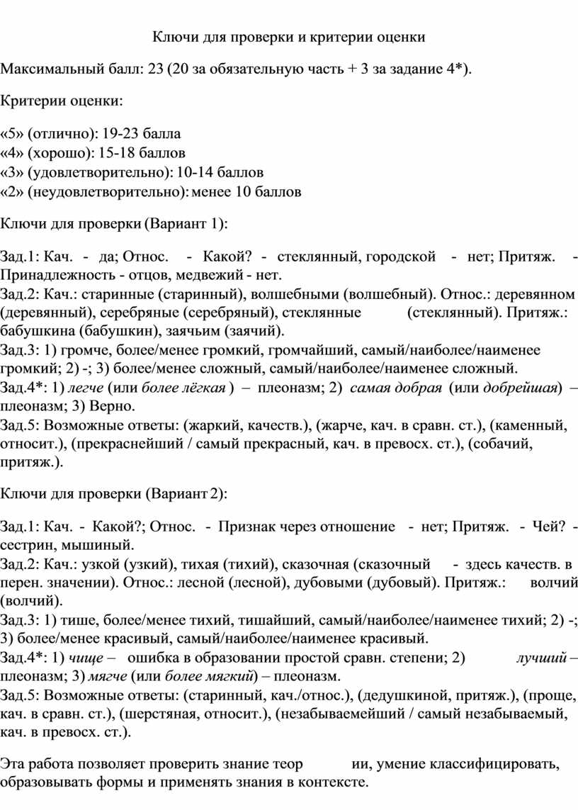 · Зад.5: Возможные ответы: (старинный, кач./относ.), (дедушкиной, притяж.), (проще, кач. в сравн. ст.), (шерстяная, относит.), (незабываемейший / самый незабываемый, кач. в превосх. ст.).