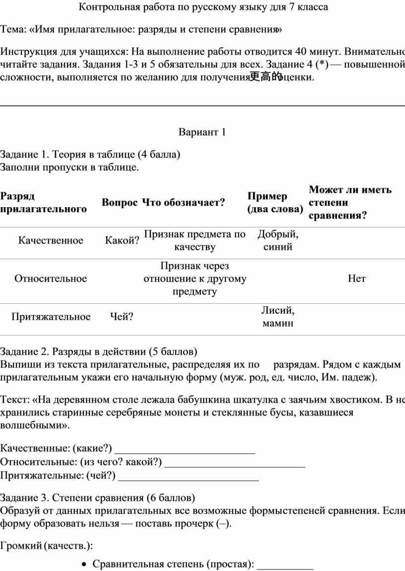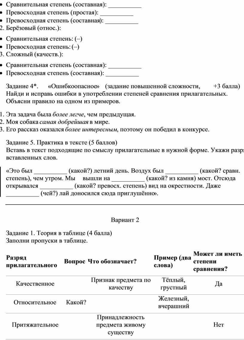 3. Степени сравнения (6 баллов)