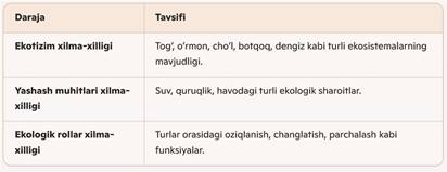 Bioxilma-xillik uch asosiy darajada ko‘rib chiqiladi: