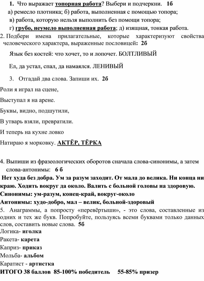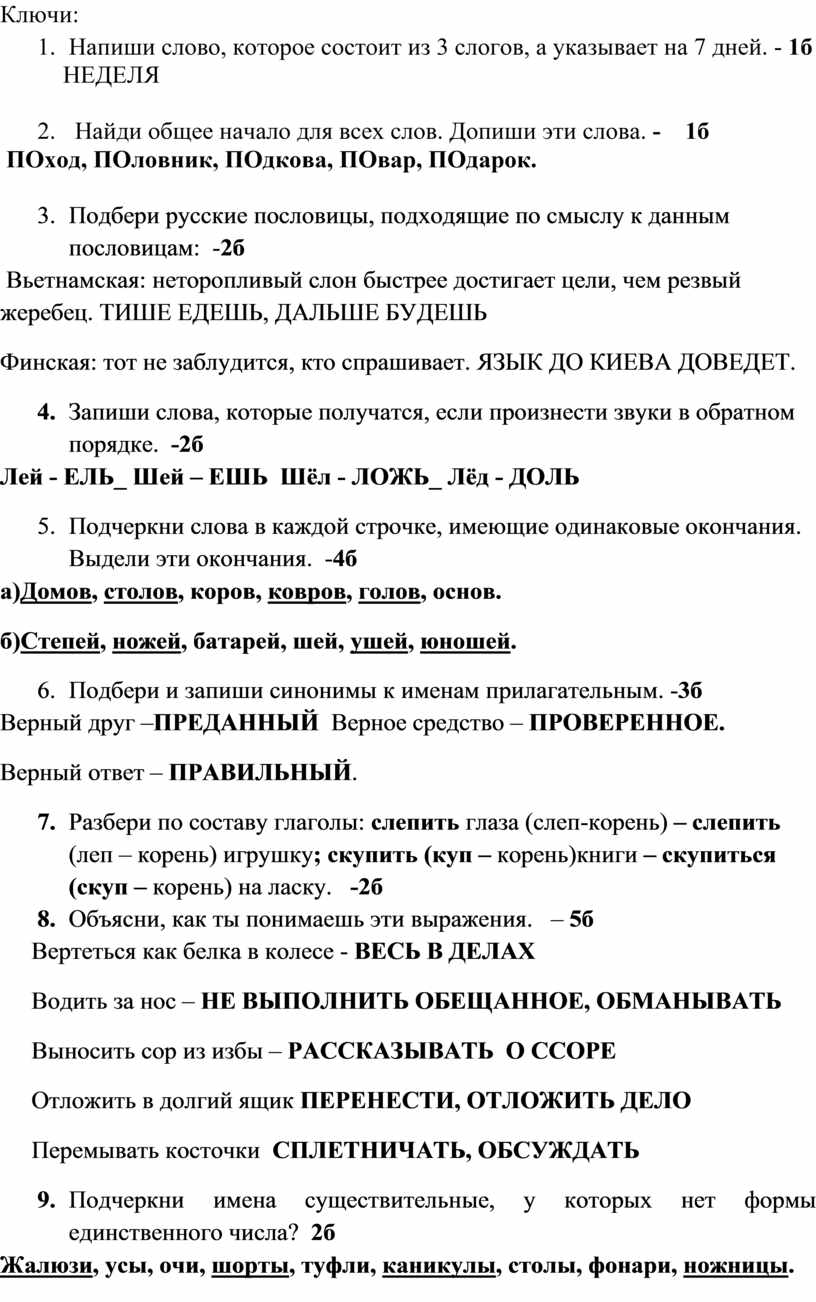 Олимпиада по русскому языку 4 класс