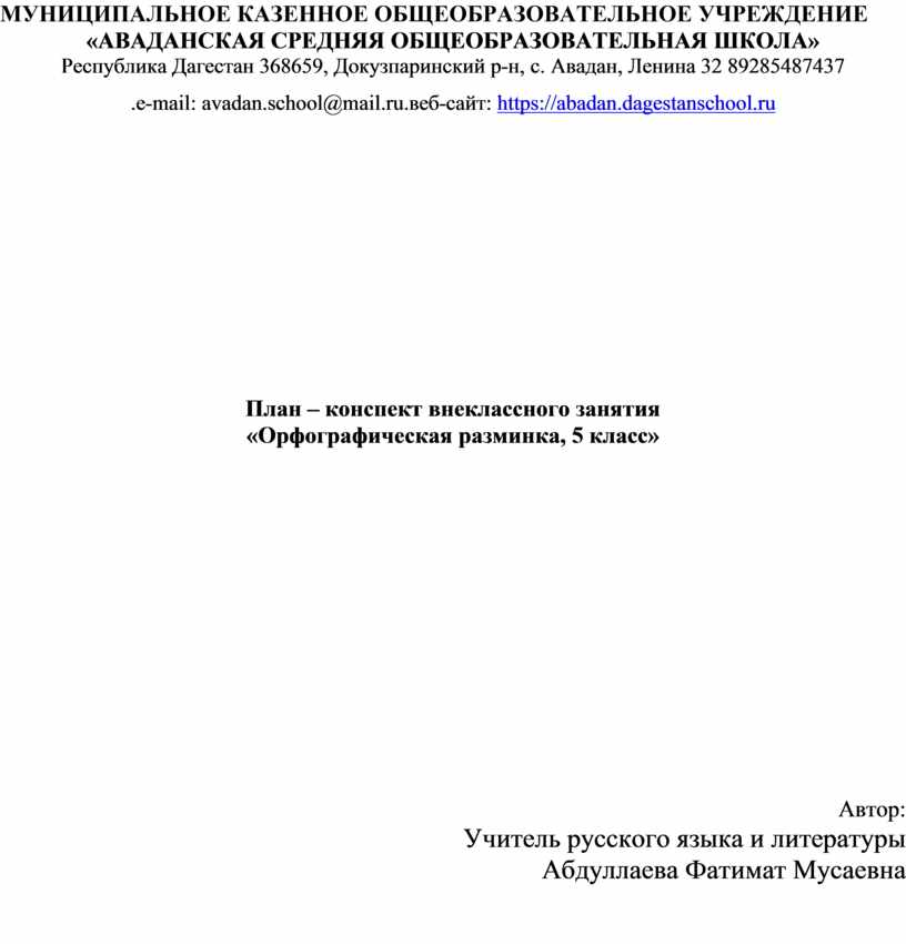 .e-mail: avadan.school@mail.ru.веб-сайт: https://abadan.dagestanschool.ru