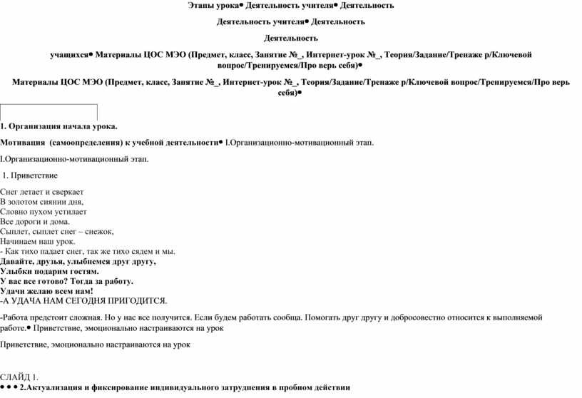 Материалы ЦОС МЭО (Предмет, класс, Занятие №_, Интернет-урок №_, Теория/Задание/Тренаже р/Ключевой вопрос/Тренируемся/Про верь себя) |