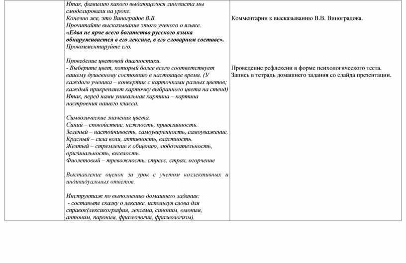 Открытый урок - «Лексика русского языка как система» - это завершающее занятие в разделе «Лексика». В процессе повторения и систематизации материала осуществляется проверка знаний и умений употребления в речи таких понятий, как лексическое значение слова, прямое и переносное значение, сфера употребления, лексическая сочетаемость, иноязычные слова, синонимы, антонимы, паронимы, фразеологические обороты, а также выявляются взаимосвязи разделов русского языка.