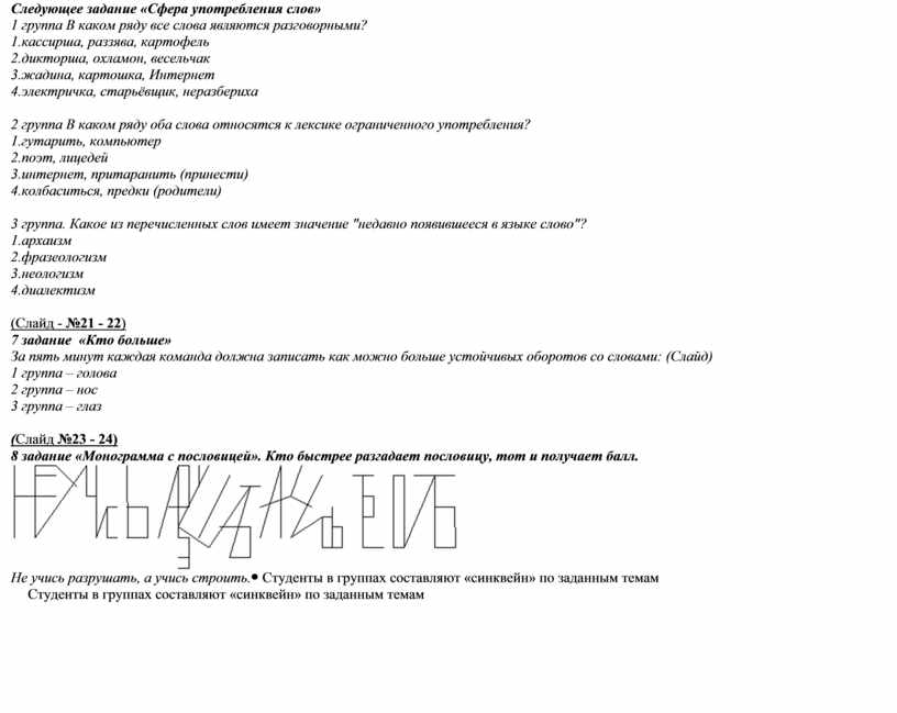 3.Отыщите неправильную ломаную линию, которая обошла бы все клетки фигуры, нигде не пересекаясь, не пропуская ни одной клетки никуда не заходя дважды, и притом так, чтобы, следуя за линией, вы сможете прочесть пословицу