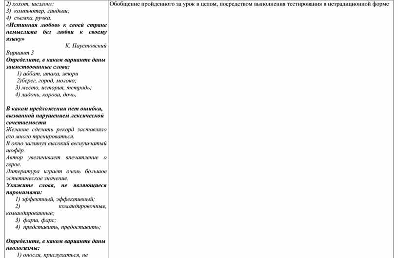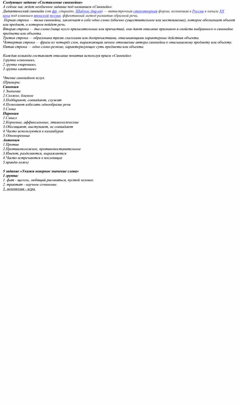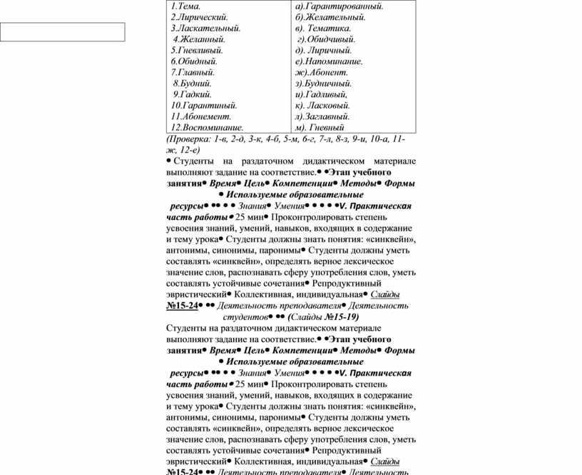 3)осуществить лингвистический тренинг, подбор лексических единиц.