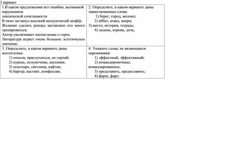 1.В каком предложении нет ошибки, вызванной нарушением лексической сочетаемости 5. В окно заглянул высокий веснушчатый шофёр. 6. Желание сделать рекорд заставляло его много тренироваться. 7. Автор увеличивает впечатление о герое. 8. Литература играет очень большое эстетическое значение. |