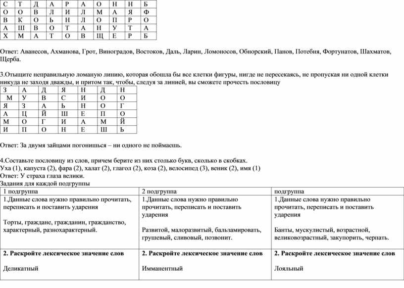 3.Отыщите неправильную ломаную линию, которая обошла бы все клетки фигуры, нигде не пересекаясь, не пропуская ни одной клетки никуда не заходя дважды, и притом так, чтобы, следуя за линией, вы сможете прочесть пословицу