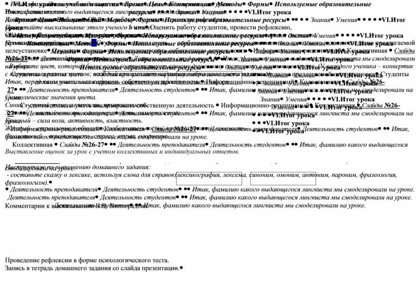 Открытый урок - «Лексика русского языка как система» - это завершающее занятие в разделе «Лексика». В процессе повторения и систематизации материала осуществляется проверка знаний и умений употребления в речи таких понятий, как лексическое значение слова, прямое и переносное значение, сфера употребления, лексическая сочетаемость, иноязычные слова, синонимы, антонимы, паронимы, фразеологические обороты, а также выявляются взаимосвязи разделов русского языка.