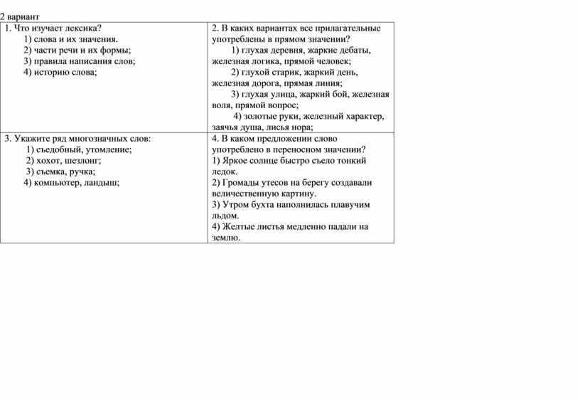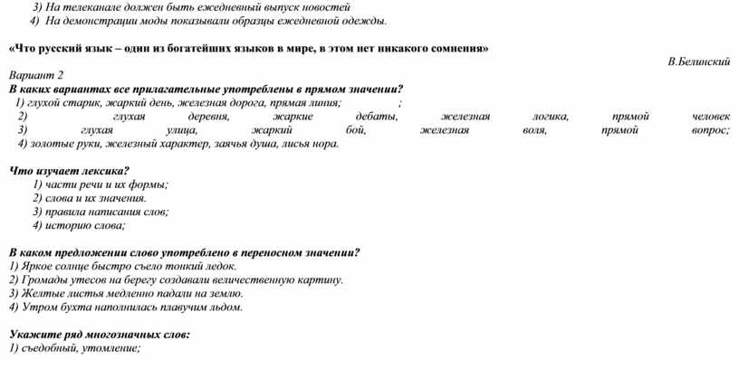 В каких вариантах все прилагательные употреблены в прямом значении?