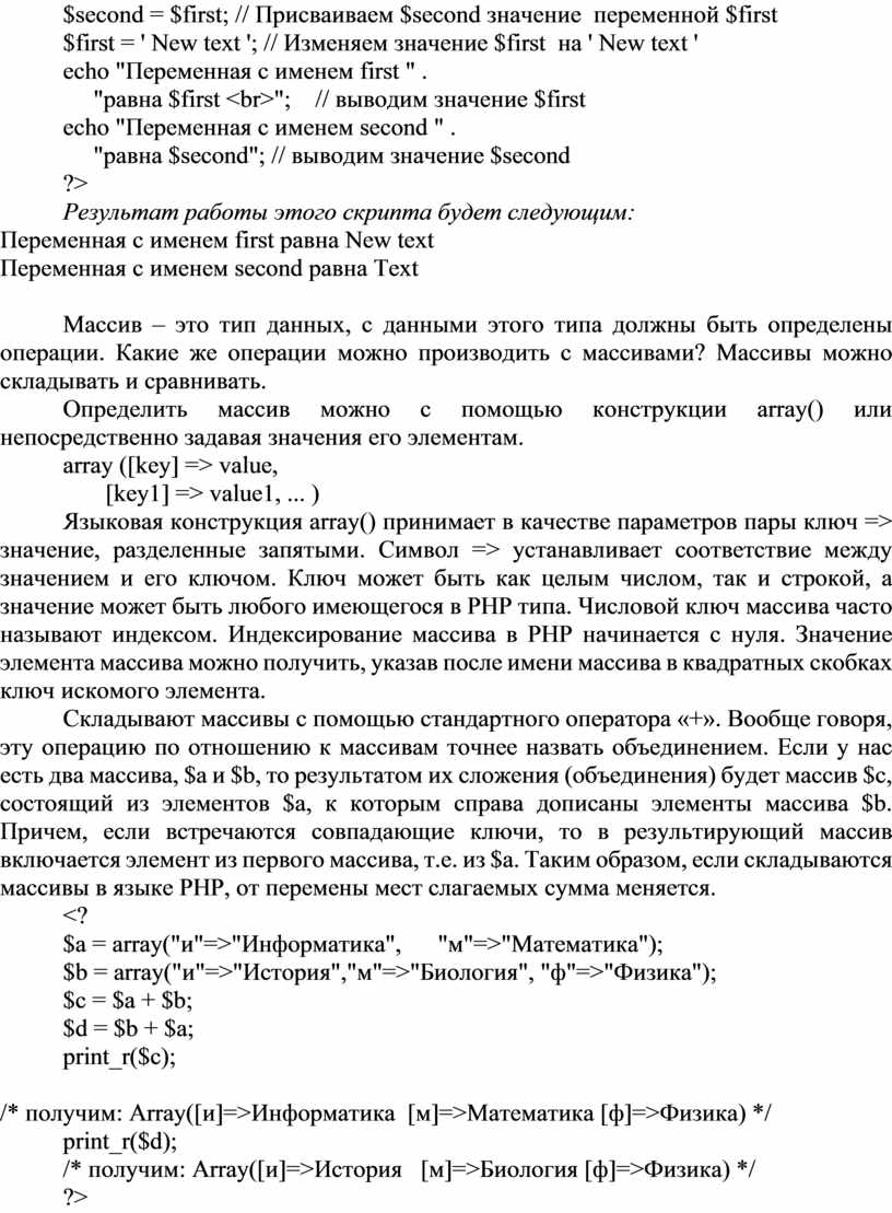 $first = ' New text '; // Изменяем значение $first на ' New text '