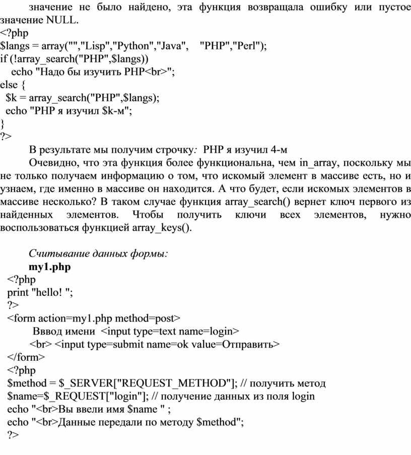 Например, имеется массив не изученных нами языков программирования. Мы хотим узнать, содержится ли в этом массиве язык PHP. Напишем следующую программу: