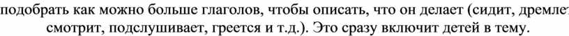 · Совет: Перед раздачей листа полезно провести 5-минутную устную разминку: показать картинку с действием (например, «котик у окна») и попросить класс подобрать как можно больше глаголов, чтобы описать, что он делает (сидит, дремлет, смотрит, подслушивает, греется и т.д.). Это сразу включит детей в тему.