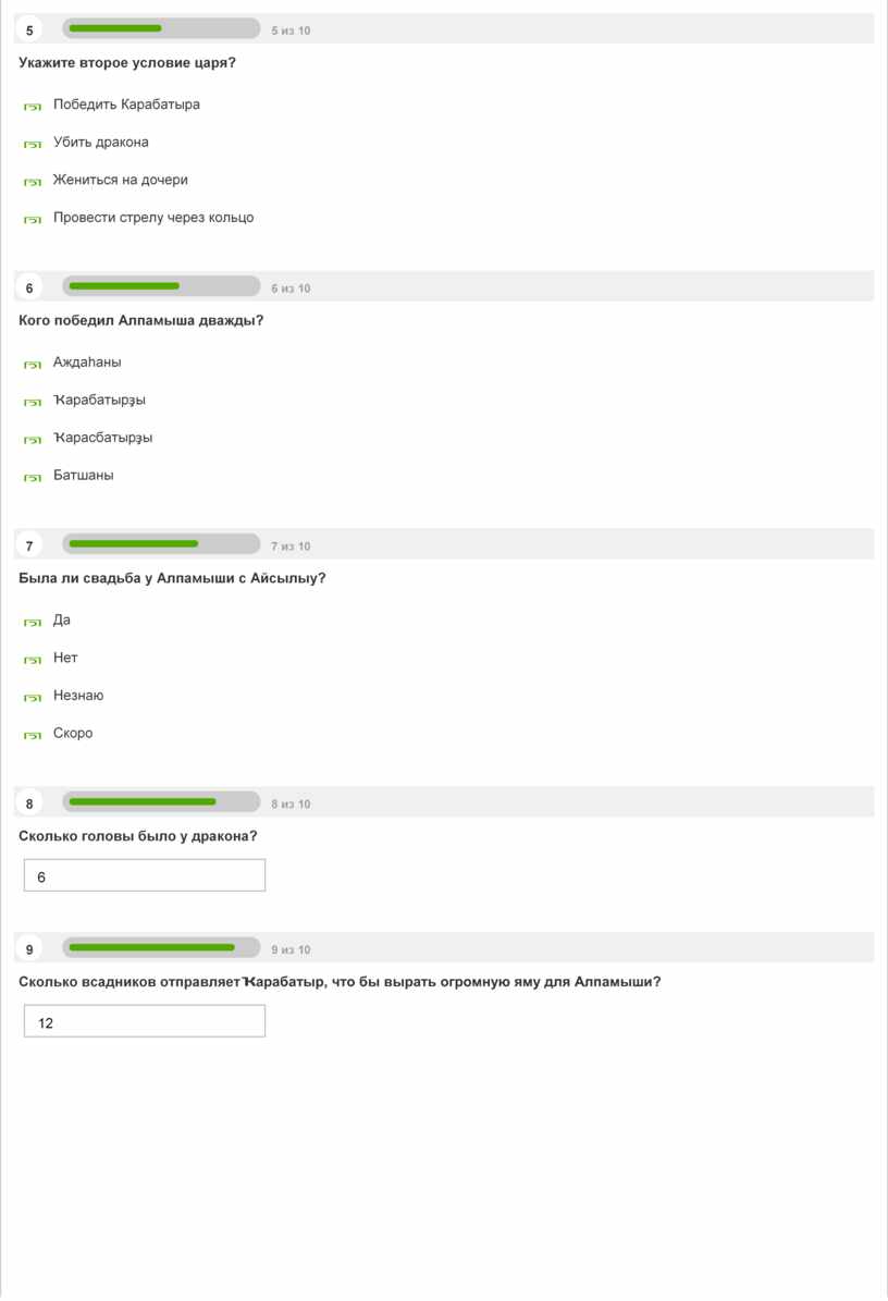 Разработка теста по теме: 'Алпамыша батыр' әкиәте, 9 класс