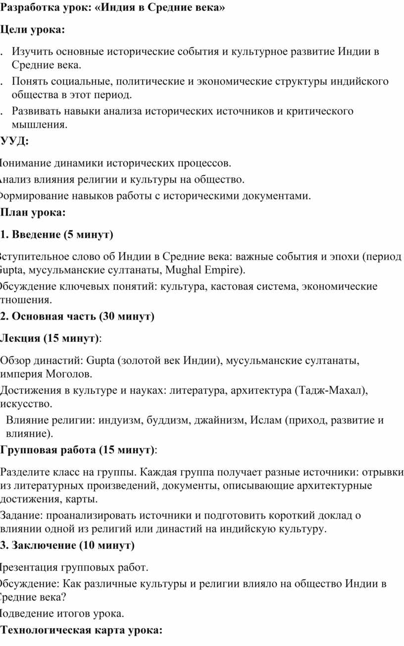 1. Изучить основные исторические события и культурное развитие Индии в Средние века.