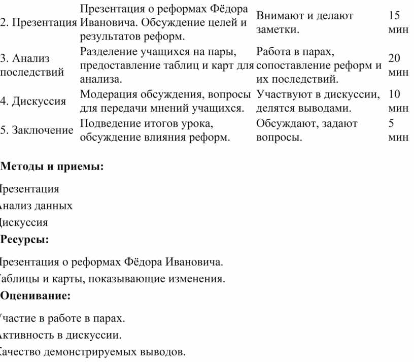 1. Анализировать реформы Фёдора Ивановича и их последствия.
