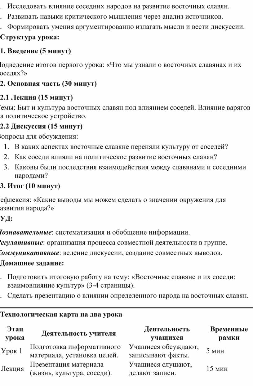 1. Познакомить учащихся с основными аспектами жизни восточных славян и их соседей.