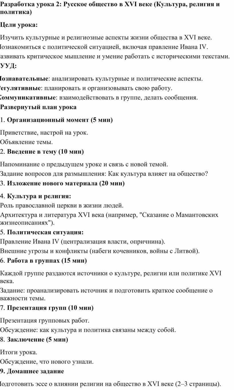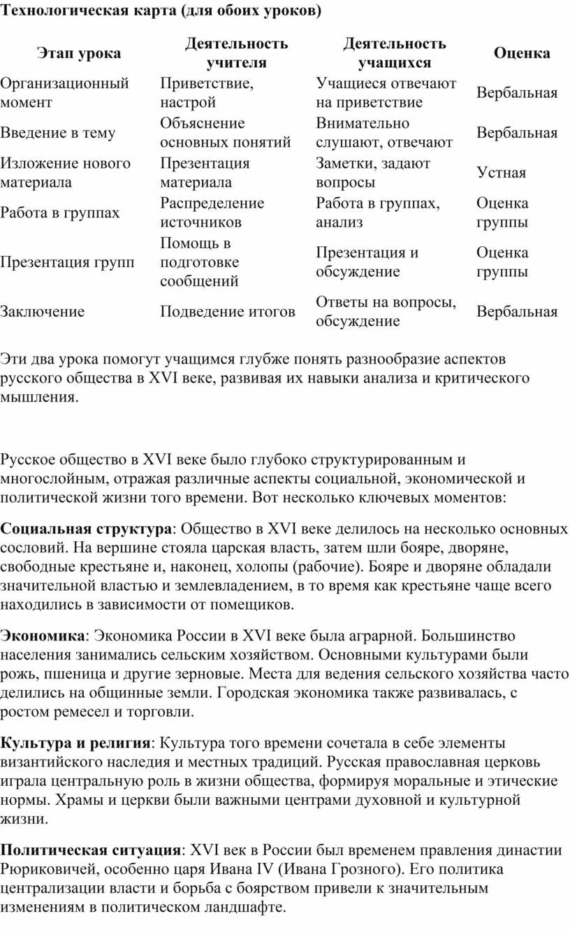 Эти два урока помогут учащимся глубже понять разнообразие аспектов русского общества в XVI веке, развивая их навыки анализа и критического мышления.